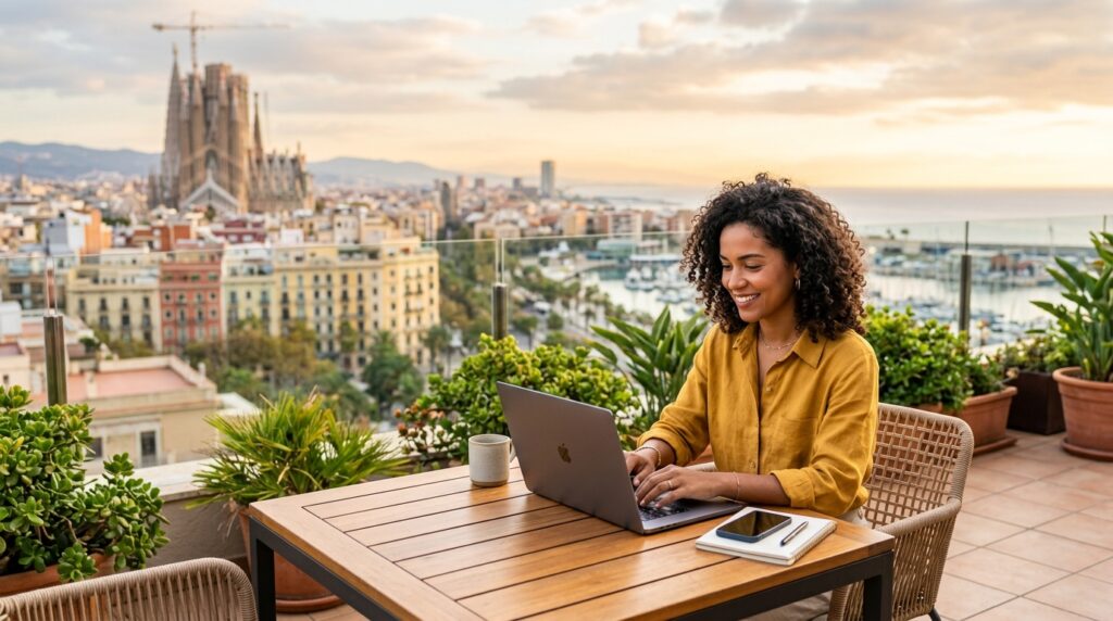 Morar fora não é um privilégio de rico. É uma decisão de quem constrói uma renda que não depende de onde você está. E essa renda pode ser construída antes de você pegar o avião.